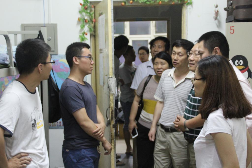 院领导以及学科部主任、副主任和毕业班班主任、全体辅导员来到文瀛苑17号公寓看望2015届毕业生。