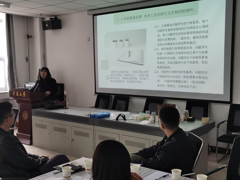 分享交流会上,张丽花老师以“问题学生的识别与应对“这个主题深入浅出地从对“问题”学生的界定、“问题”学生的教育原则、“问题”学生的应对策略进行了分享,张老师结合自己17年的工作经验,通过列举、剖析大量的真实案例向大家介绍了不同类型学生问题的应对方法,期间辅导员老师们积极互动迸发思维碰撞的火花,收获颇丰。