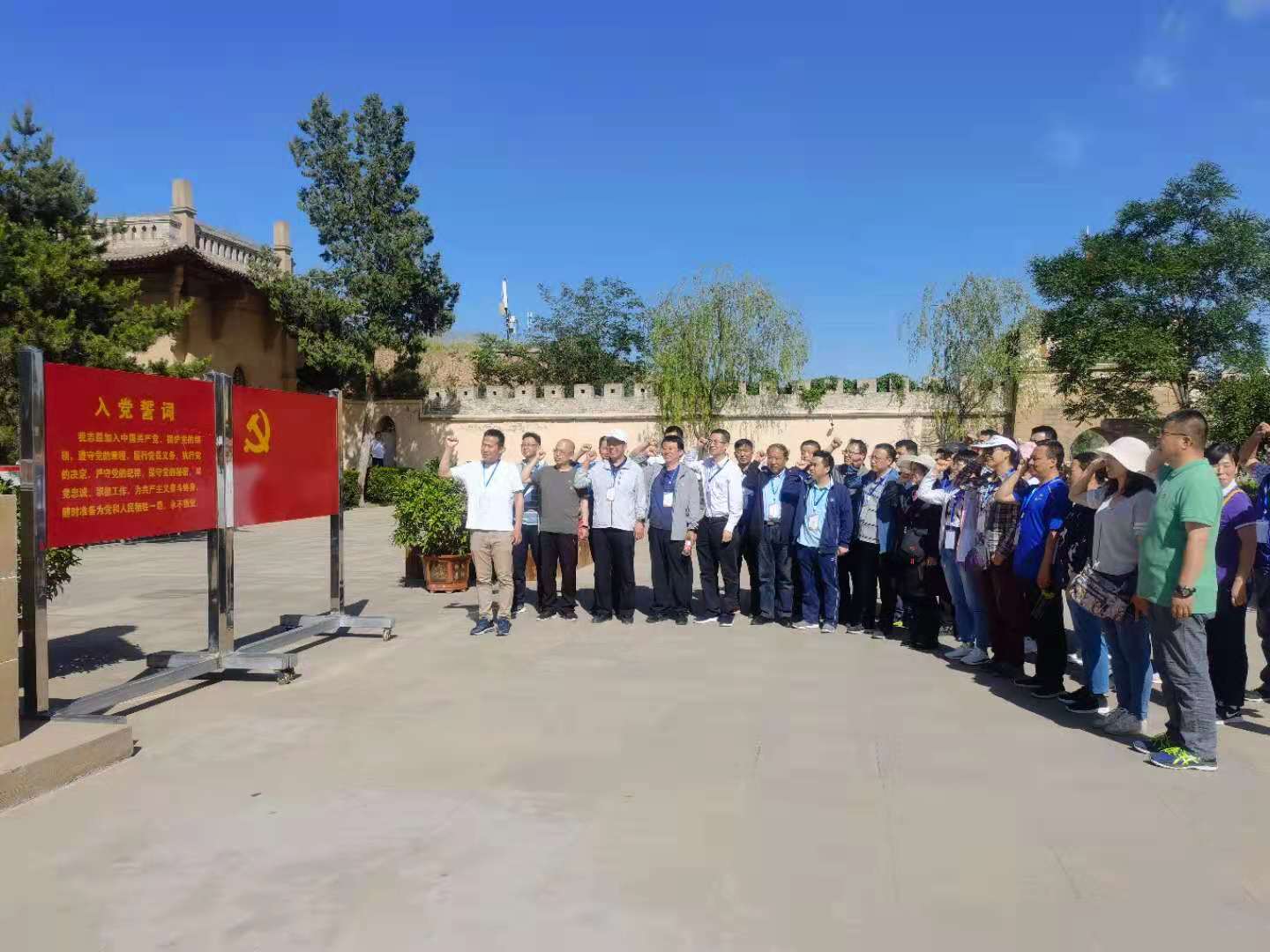 活动第一天,党员们怀着对革命圣地、红色摇篮的憧憬和向往,先来到绥德郝家桥革命旧址,接受了“把党的利益放在第一位的工作方法”的主题教育,现场参观了郝家桥革命历史纪念室、习仲勋纪念碑、习仲勋旧居、齐心旧居、刘玉厚旧址、郝家桥乡政府旧址。在讲解员的解说下,大家结合一幅幅珍贵的图片和一间间朴素陈列的窑洞,体验当时艰苦的革命战争环境。下午来到米脂杨家沟革命纪念馆,进行了“新中国的曙光从这里升起”、“以史为鉴、居安思危、廉洁自律、反对“四风”两项主题教育,现场参观了毛泽东、周恩来旧居、中共中央“十二月会议”旧址、毛主席转战陕北纪念馆等,并开展了以“目前形势和我们的任务”为主题的现场教学,接着由刘光副书记带领大家重温了入党誓词,党员们高举右手庄严宣誓,重温对党的忠诚誓言,以铿锵誓言致敬中国共产党的峥嵘岁月。