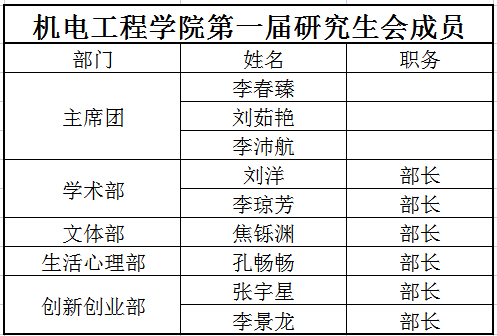 第一届研究生会成员如下: