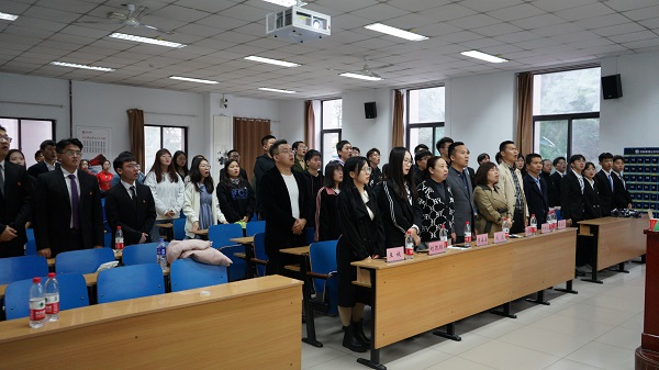 随后,学生骨干代表进行了旗帜交接,并由尹云飞同学带领大家宣读誓言,充分体现出了大家对做好学生工作的决心。