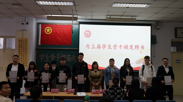 于10月12日下午在主楼11205H教室举行2021年学生干部换届大会。院党委副书记刘光、学生科科长张丽花、院团委书记李晶晶、学生科辅导员老师刘凯琼、王娇、王永文、邢培岩应邀出席。