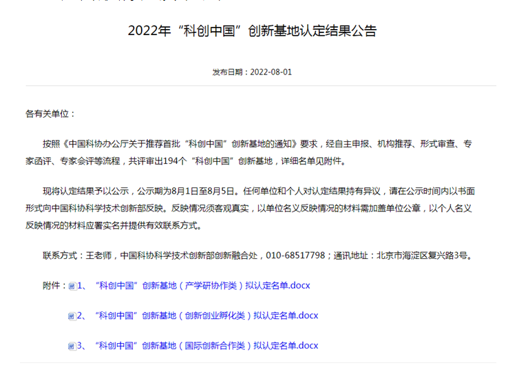 8月1日,中国科学技术协会(简称“中国科协”)网站公布了2022年首批“科创中国”创新基地认定结果,共194个“科创中国”创新基地入选。依托威尼斯人