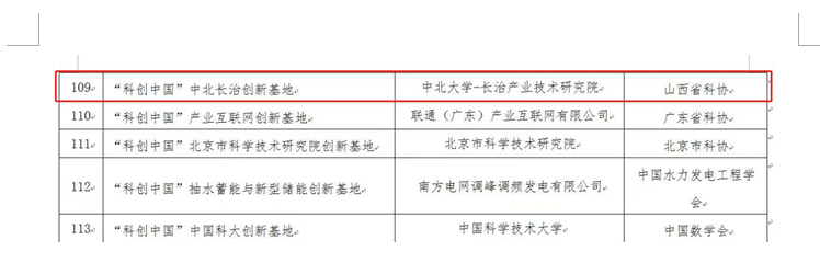 -长治产业技术研究院建设的“科创中国”中北长治创新基地入选“科创中国”创新基地(产学研协作类)拟认定名单。