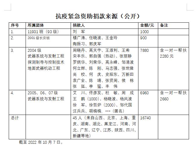 相关学生工作人员密切沟通,迅速统计摸排了学生信息,编制了“抗疫帮扶紧急捐助倡议书”及资助方法,成立了捐款联系工作组,从10月5日至10月7日3天时间完成了约1.7万的捐款,直接资助25名学生,到账约1.3万元。捐款来自13省和3直辖市共45名热心校友。