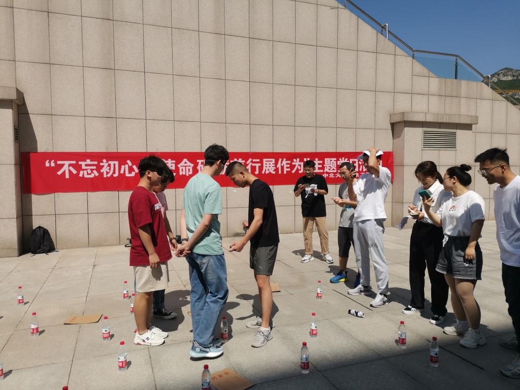 研究生党支部和研究生会组织,50余人参加。活动分为红色知识问答、趣味游戏两个部分。首先,主持人向大家介绍了活动内容和流程,并且准备了破冰小游戏,使大家在游戏中快速熟悉彼此并进行分组。然后,工作人员组织大家开展了一系列游戏:看图猜词、搭桥渡河、送鸡毛信游戏、背夹球游戏、地雷阵游戏等。其中送鸡毛信游戏是根据抗日战争时期儿童团团长海娃克服重重困难,把一封鸡毛信送给游击队并配合游击队消灭了敌人的故事设计的,通过这个游戏同学们可以体验一下抗战时的艰险。最后,在大家的齐心协力下,活动顺利完成。
