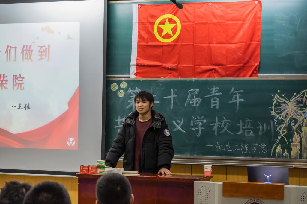开班典礼在庄严的国歌声中拉开帷幕。刘书记做动员讲话,首先对学生骨干的工作表示认可,并希望学生骨干在今后的工作中,强化学习,坚定理想;崇德向善,遵规守纪;知行合一,担当作为,最后预祝此次培训会圆满结束。随后主持人宣读此次培训细则,李鑫同学作为学生代表发言,在开班典礼的最后,全体成员唱共青团团歌,并集体合影。