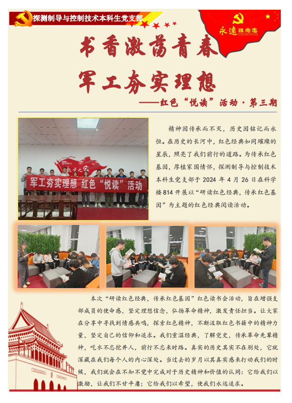 举办了“书香激荡青春,军工夯实理想”红色经典“悦读”活动第一期至第五期。