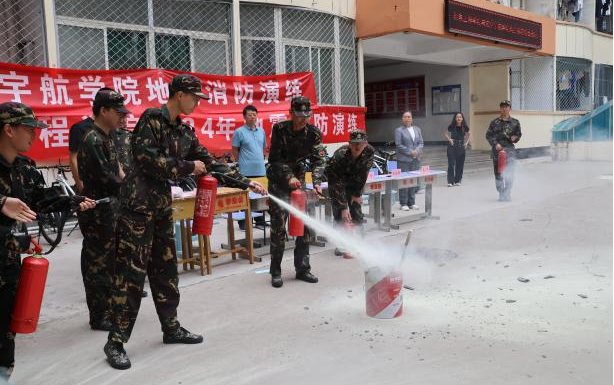 接下来向远峰科长进行火灾消防安全知识普及,并对灭火器使用进行了详细的讲解,安排学生代表演示。真实的演示加强了讲解效果。