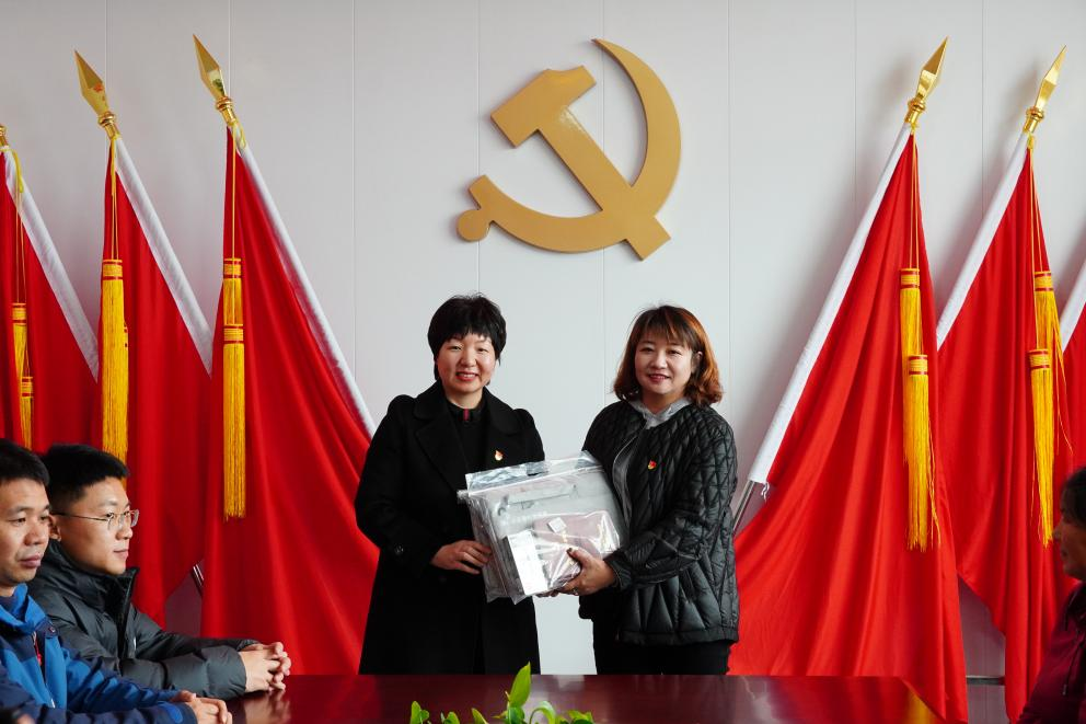 党委为小双碾村党支部赠送了23套理论学习用品,包括学习书包、笔、党员理论学习笔记本、党徽等,小双碾村党支部书记李艳表示了感谢。驻小双碾村第一书记吴耀金对近年来小双碾村发展情况作了交流,介绍了特色种植、特色养殖、特色农产品销售,尤其是开创了“电商+”消费帮扶模式,在京东、拼多多、快手、视频号开网店,为小双碾村打下了产业多元化的基础。随后吴书记带领大家学习了《习近平乡村振兴》《五村十年话变迁》《同心协力全面推进乡村振兴》《乡村振兴这一年》等,让我们切实感受到乡村的巨大变化。