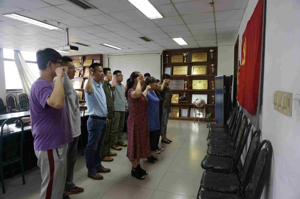 党委关于“两学一做”活动的安排,各成员就如何在工作生活中贯彻落实“两学一做”精神进行了积极发言。支部成员张丽花表示,百年大计,教育为本,作为一名教师,要将习近平总书记的讲话精神落实到实际工作中,做一名有理想信念、有道德情操、有扎实学识、有仁爱之心的人民教师。预备党员杨博炜同志表示,作为一名预备党员,还有许多要学习的地方,在今后的学习工作中,既要仰望星空,又要脚踏实地,向老党员多学习,早日转正,做一名合格的党员。支部书记刘光做总结发言,他指出,“两学一做”,不仅要“学”,更要“做”。在“学”上,支部要定期开展学习研讨会,个人也要及时学习记录对党章党规和习近平总书记系列讲话的学习体会和感悟;在“做”上,每个党员都要牢记党的宗旨,立足本职岗位,扎扎实实工作。最后,支部所有成员面向党旗庄严宣誓,重温入党誓词。