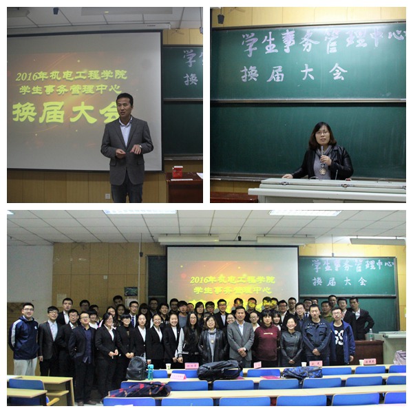 党委副书记刘光、学生科科长张丽花为上届主席团的各位成员颁发荣誉证书。刘翔天带领所有在场学生宣誓,同学们表示愿意全身心的投入到学生事务管理中心的工作中,共同创造机电的美好未来。