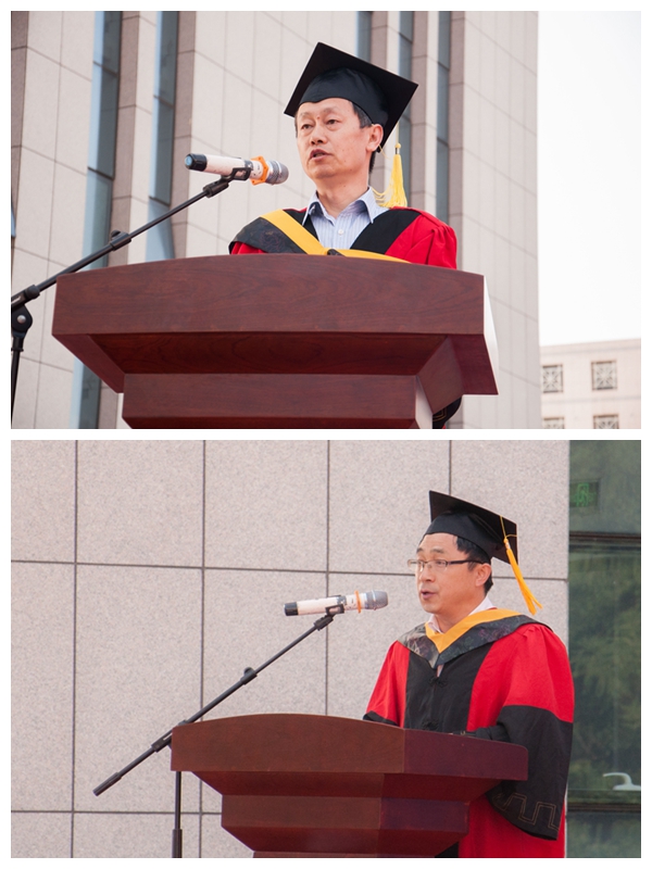 包括院领导、党委委员和学位委员会委员在内的十位老师为全体毕业生一一拨正流苏,颁发毕业证、学位证。