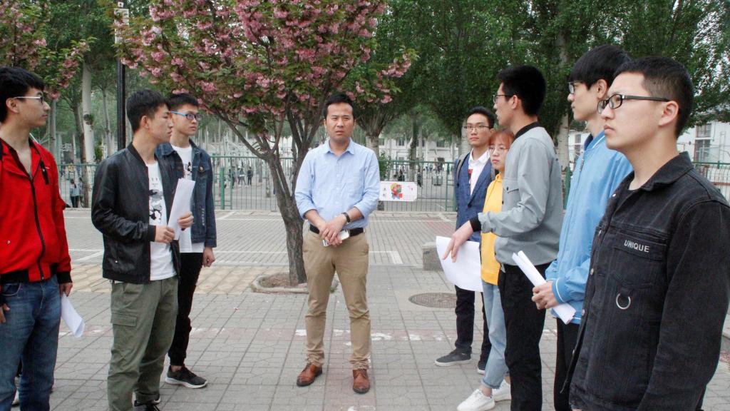 党委副书记刘光和辅导员王姣老师来到行知广场,对训练中的威尼斯人