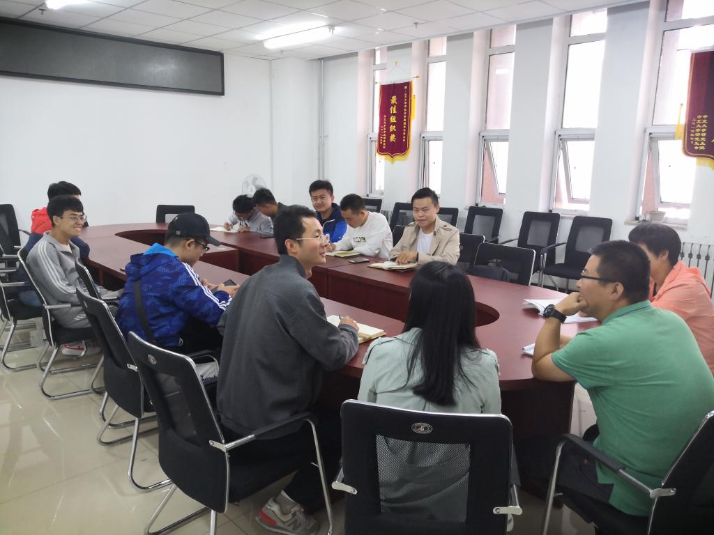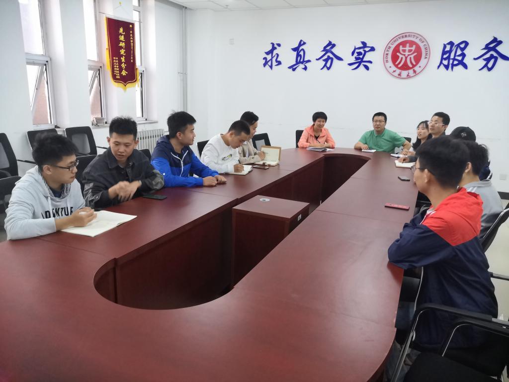 楼313会议室召开2019级硕士研究生班委见面会,科研科赵心远、常变红、王丙龙、武瑞芳四位老师参加会议。