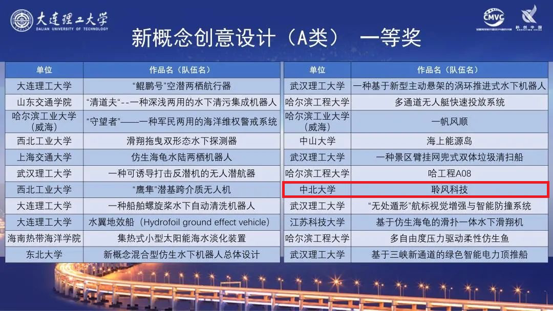 聆风科技创新团队在与国内外知名高校、军队、企业院所竞争中脱颖而出,成为山西省唯一荣获新概念创意设计(A类)全国一等奖的队伍。其作品《“聆风能量岛”500米级水下无人系统》受到答辩专家的一致认可,该作品由陈鹏云、王丙龙指导,具体由冯世平、闫祁晨、朱前吉、王邻、段树文等同学完成。