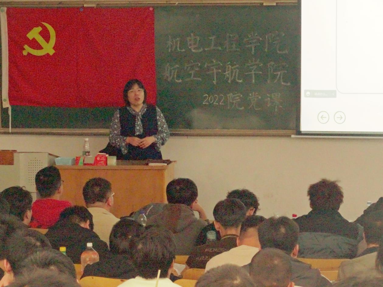 学生科科长张丽花老师进行授课,张老师授课的主题是“新时代,新思维,做与时俱进的共产党员”。期间张老师总结了党发展过程中形成的一系列精神,他强调了中国共产党胜利的果实来之不易,作为新时代大学生,作为军工学子,我们要牢记“自力更生,艰苦奋斗,军工报国,甘于奉献,为国争光,勇攀高峰”的军工精神。坚定不移听党话、跟党走,怀抱梦想又脚踏实地,敢想敢为又善作善成,立志做有理想、敢担当、能吃苦、肯奋斗的新时代好青年,让青春在全面建设社会主义现代化国家的火热实践中绽放绚丽之花。