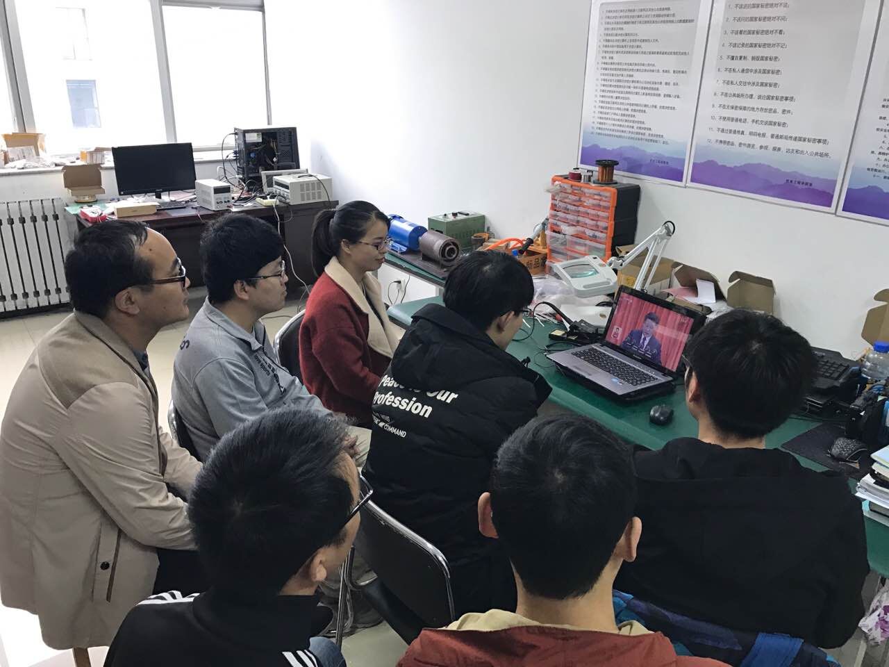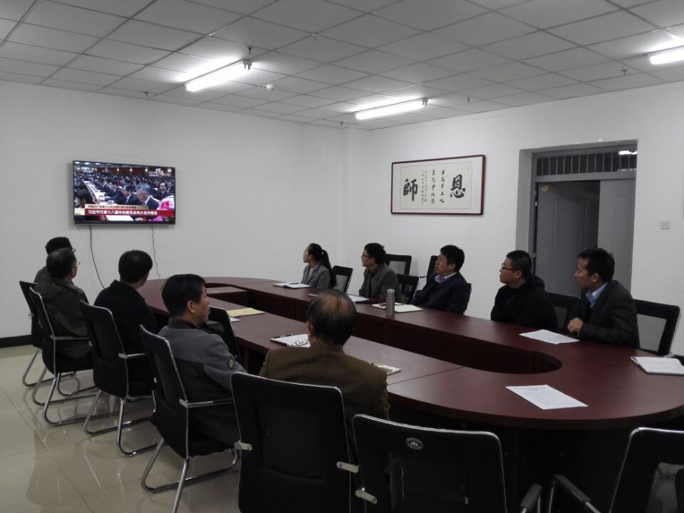 研究生在科学楼各个教研室观看党的十九大开幕会,学生科组织本科生在科艺苑观看党的十九大开幕会。