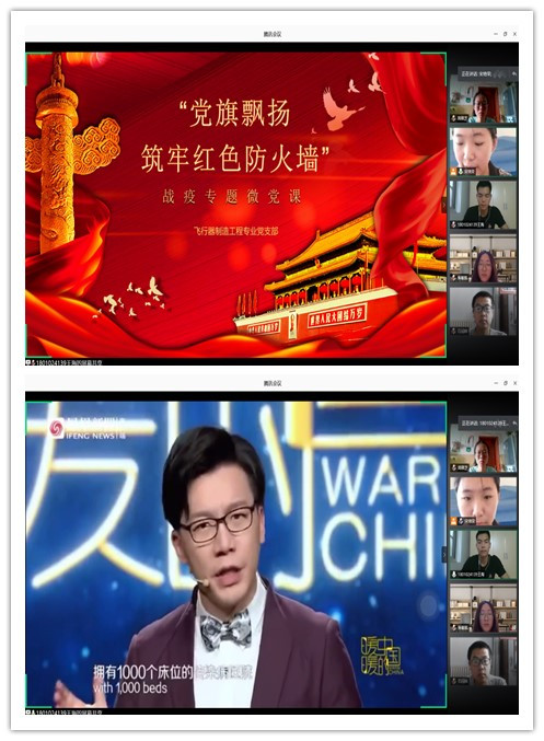 2020年6月19日下午3点,飞行器制造工程专业党支部在腾讯会议app上召开了“党旗飘扬 筑牢红色防火墙”战疫专题微党课,支部书记张丽花老师出席本次会议,支部副书记宋培荣同志主持会议,二支部全体成员参加本次会议。