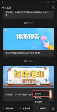 1、扫码或搜索“中北就创”微信公众号。
