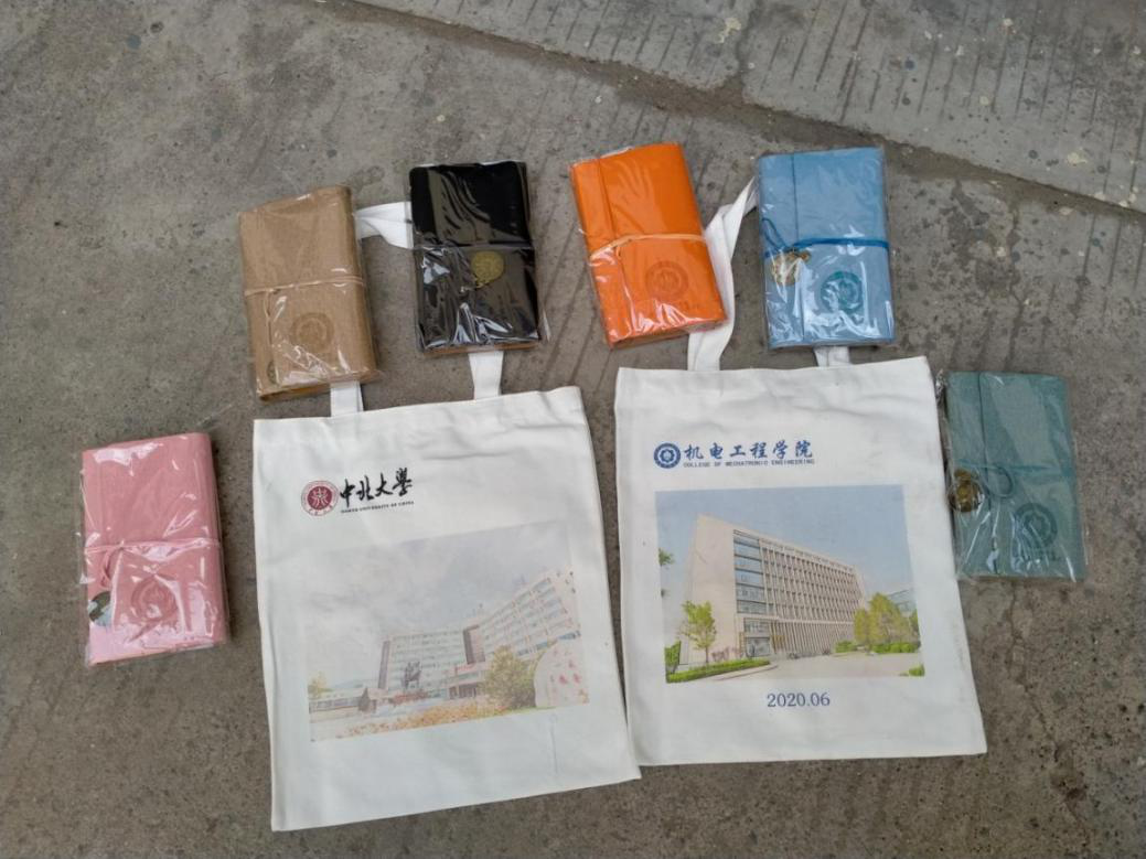 精心准备的一份毕业礼物:印有纪念图案的挎包和手账本。此次共发出621份毕业礼物。