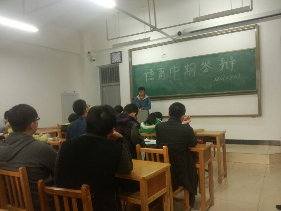 答辩开始魏玉峰同学作为第一个进行了答辩,他自己回顾自己大学前两年的生活,主要对自己在班长职位上的一些感悟和学习上的反思,谈到未来也讲到会以考研为目标。下来各位同学分别以学号的顺序进行了答辩。